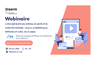 L’IFB est invité à un webinaire relatif à l’interopérabilité des données de santé et de recherche médicale, organisé par l’INSERM le mercredi 20 mars 2026, de 9h à 17h.