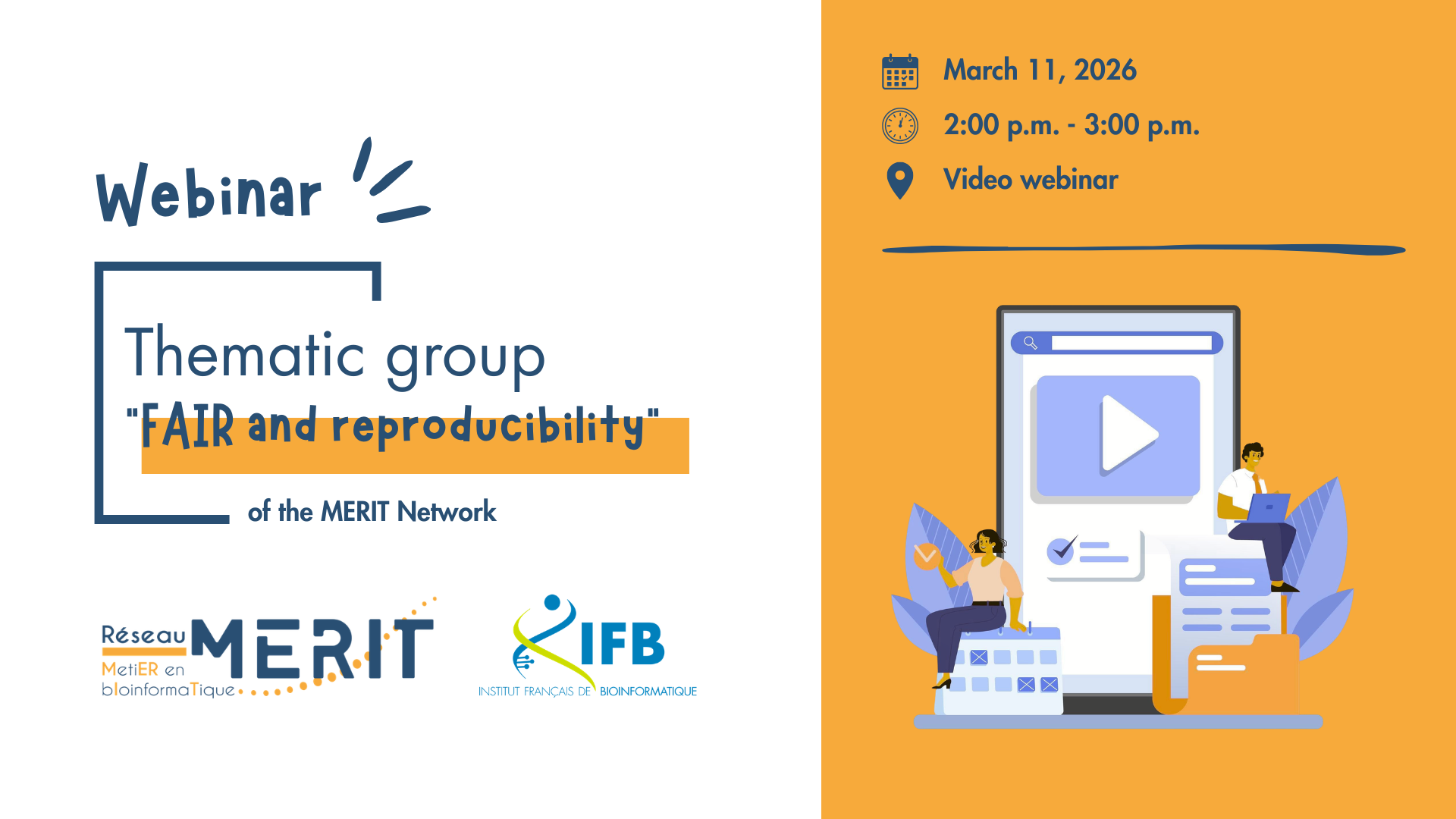 The FAIR, reproducibility and workflows working group of the MERIT network (MetiER en bIoinformaTique du CNRS) is organising its first webinar on Wednesday 11 March from 2pm to 3pm, in association with the IFB.