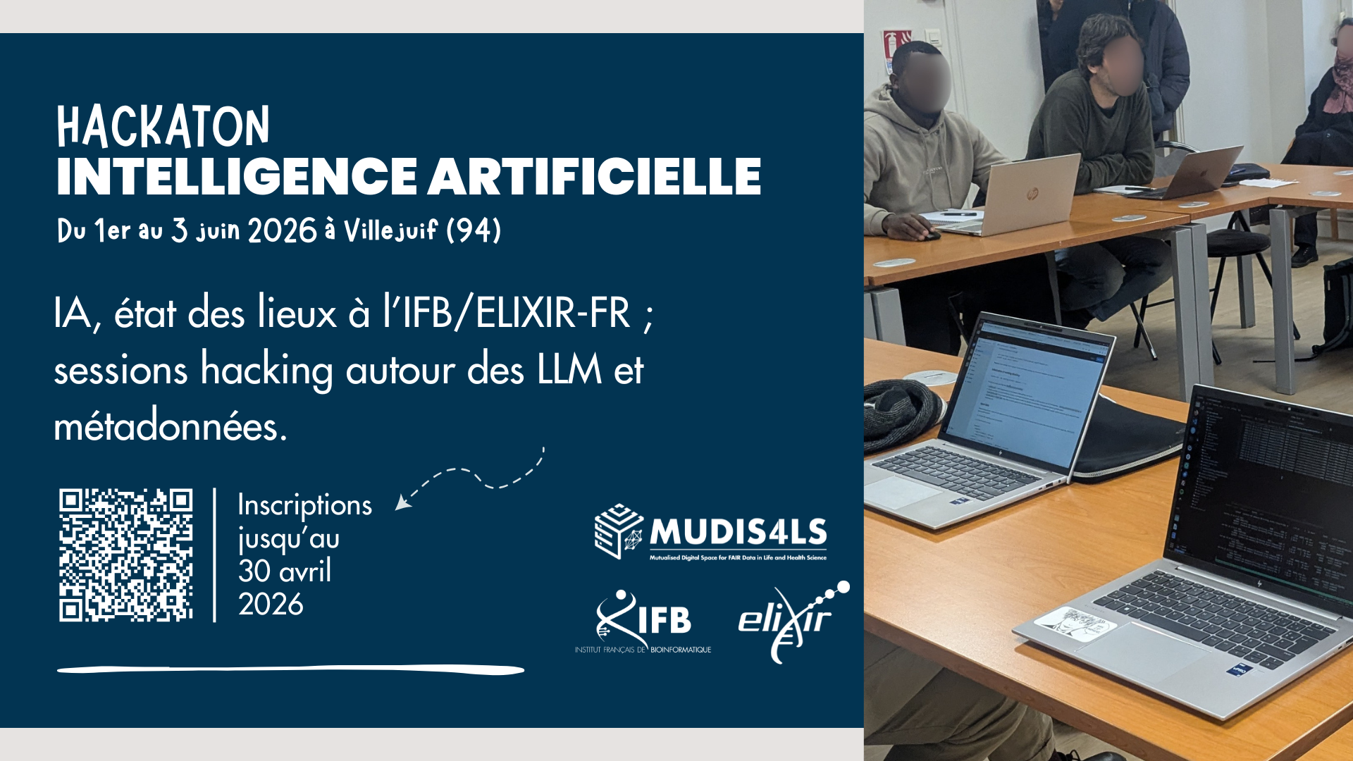 Dans le cadre de son axe stratégique dédié à l’intelligence artificielle et du projet MUDIS4LS, l’IFB/ELIXIR-FR organise un hackaton IA du 1ᵉʳ au 3 juin 2026 sur le campus CNRS de Villejuif. Cet événement, à destination de l’IFB-core et des Plateformes membres, contributrices et équipes associées de l’IFB, réparti sur 4 demi-journées, vise à dresser un état des lieux des travaux en cours et à venir au sein de l’infrastructure, tout en préparant une stratégie pour les années futures. Les sessions de hacking seront particulièrement centrées sur les LLM (Large Language Models), l’usage des agents IA et RAG.