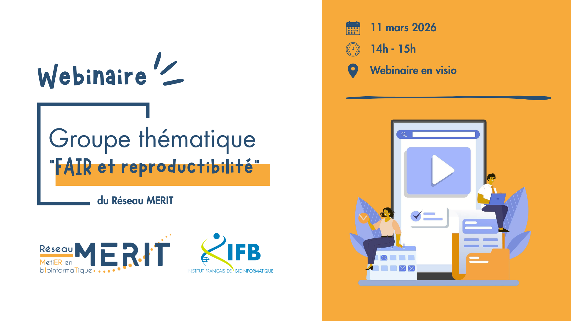 Le GT FAIR, reproductibilité et workflows du Réseau MERIT (MetiER en bIoinformaTique du CNRS) organise son 1er webinaire le mercredi 11 mars de 14h à 15h, en association avec l’IFB.