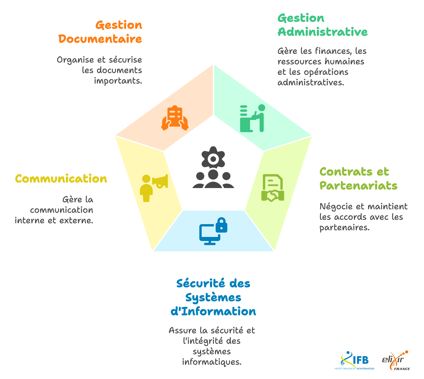 Pour accompagner le développement de ses activités, l’IFB-core a structuré une équipe dédiée à l’administration et au support. Elle est organisée autour de cinq pôles :